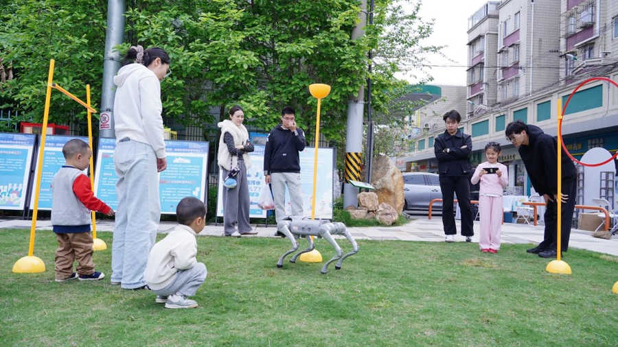 炫酷科技展示区让前沿科技“看得见、摸得着、玩得了”。智能机器狗灵活行走、翻滚、精准完成各项指令,展现出超强的智能化水平;无人机编队腾空而起,灵活变换各式队形,带来震撼的视觉体验。现场同步开放互动体验环节,大小朋友有序排队参与,亲手操控设备完成各项任务,让原本遥远的科技从屏幕走向身边,成为可触摸、可掌控的生活伙伴。