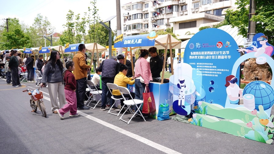 本次科普嘉年华结合东明路街道第四届美好生活节,与街道艺术展演、非遗传承、运动健康等特色活动有机联动、互补融合,让科普真正成为美好生活的重要组成部分。依托街道“15分钟生活圈”成熟配套与“烟火灵岩”街区特色,科普资源精准对接居民日常需求,与文化、美育、健康、消费等场景相互支撑、同向发力,共同构建起有温度、有质感、可参与、可沉浸的社区生活体验矩阵,让科学素养提升自然融入居民休闲、娱乐、学习的日常,使科普成为东明居民追求的一种生活新风尚。